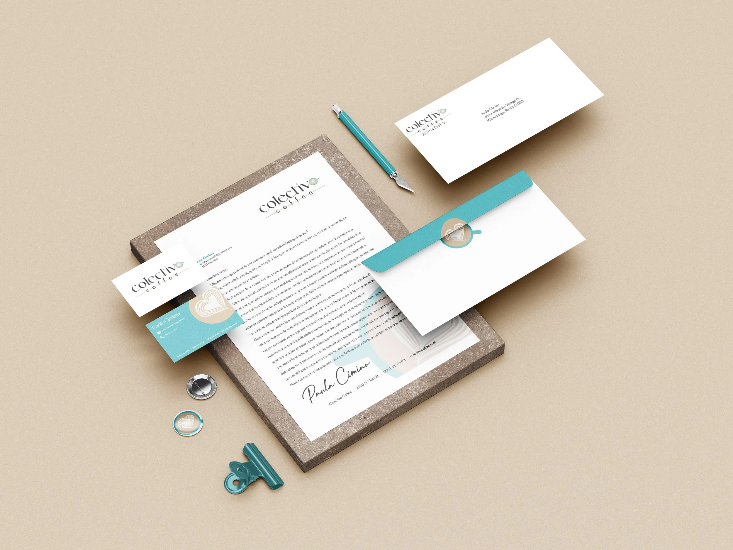 The objective of this project was to rebrand a company. I chose a local coffee shop, Colectivo Coffee located in Chicago, Illinois. In order to redesign their logo, I did some research on the company. Looking at their website I noticed how messy and inconsistent their menu was. On their cups, coffee bags, and merchandise they used over 5 different logos. The logos didn’t work well together, so I wanted to bring my own twist to it. Redesigning the logo I brought black, teal, and brown into the color palette and used the typefaces Qanoar and Futura PT. Because Colectivo Coffee has a script typeface as their main logo, I wanted to modernize it. After redesigning their logo, I then created a cover letter, business cards, and an envelope. When designing them, I stayed consistent with the theme and placement of colors and logos. For the deliverables, I designed a coffee bag, coffee cup and mug, and tote bags. When designing the deliverables I played with hierachy, placement of logo, and color.
