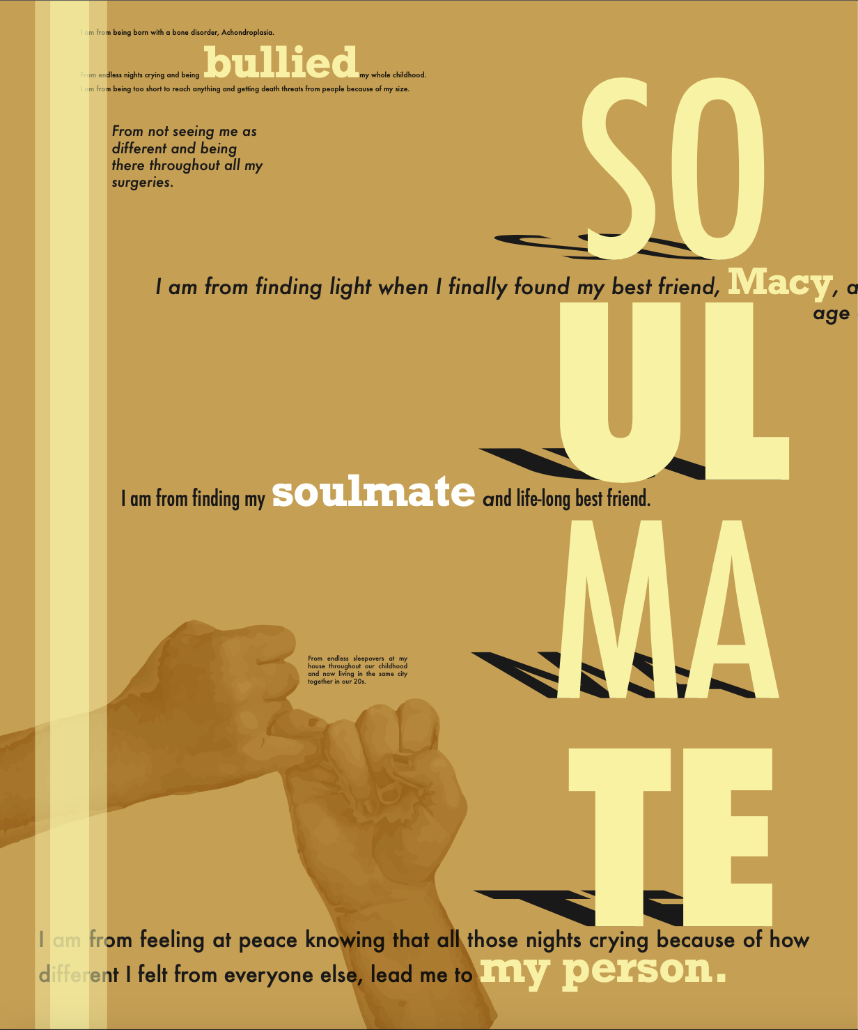 I am from finding peace knowing that all those nights crying because of how different I felt from everyone else, lead me to my person.